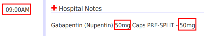 - Why was he given yet ANOTHER administration of 50mg of Gabapentin at 09:00 hours after the preceding two during night shift?