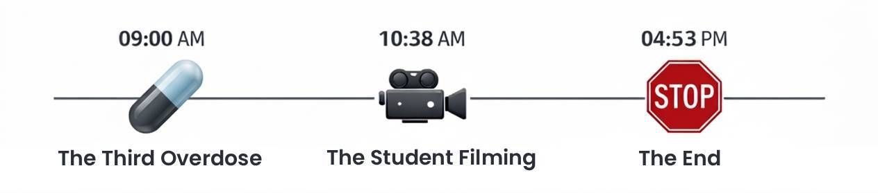"0:00" creates a clinical vacuum that prevents any investigator from syncing the time of death with specific staff movements or medication logs. It is the digital equivalent of shredding a death certificate to ensure no-one can prove who was in the room when the "death" occurred.